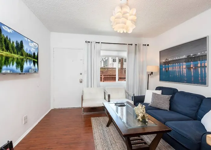 Das 1-Zimmer-Apartment ist 4 km vom Santa Monica Pier vom Viertel Venice Beach von Los Angeles. Der Ocean Park ist in 10 Minuten mit dem Auto zu erreichen. Der Venice Beach Drum Circle ist in ca. 15 Autominuten Entfernung von diesen Apartments.